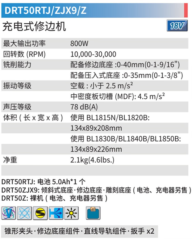 牧田(MAKITA)充电式修边机18V锂电雕刻机多功能小雕机电木铣电